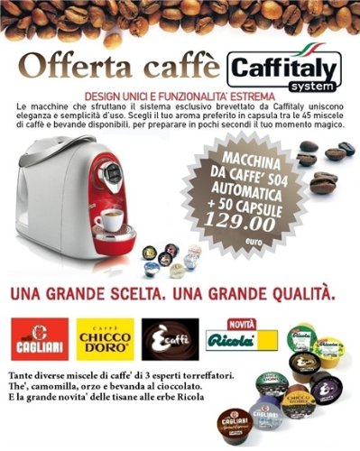 Descrizione di Grande promozione Macchina da caffe' Rosso/Argento S04 + 50 capsule.